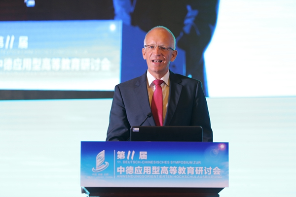 劉錦在致辭中表示,今年是中國改革開放40周年,中德教育合作交流正是中外教育不斷堅稱優(yōu)勢互補、資源共享、合作緊密關(guān)系的生動縮影。中德教育交流合作特點鮮明,規(guī)模不斷增大,形式豐富多樣,合作富有實效。截止目前,經(jīng)我國教育部審批的本科以上層次的中德合作辦學(xué)項目51個,機(jī)構(gòu)9個。奧斯納布呂克應(yīng)用科學(xué)大學(xué)與合肥學(xué)院合作的中德物流管理專業(yè)就是其中的典范。劉錦指出,應(yīng)用型高等教育在貼近實際、服務(wù)社會、推動發(fā)展方面作用顯著、意義重大。習(xí)近平主席在全國教育大會上要求推進(jìn)產(chǎn)教融合、校企合作,培養(yǎng)更多應(yīng)用型、復(fù)合型人才。德國的雙元制培養(yǎng)、應(yīng)用型研究具有很強(qiáng)的借鑒意義。今年,中德兩國總理共同見證簽署了《關(guān)于深化高等教育和職業(yè)教育領(lǐng)域合作的聯(lián)合意向性聲明》為兩國高等教育和職業(yè)教育合作指明了方向。希望本次研討會能加強(qiáng)經(jīng)驗交流、分享發(fā)展理念;推動合作辦學(xué),提升培養(yǎng)質(zhì)量;促進(jìn)產(chǎn)教融合,實現(xiàn)優(yōu)勢互補,為中德應(yīng)用型高等教育發(fā)展產(chǎn)出更多碩果。