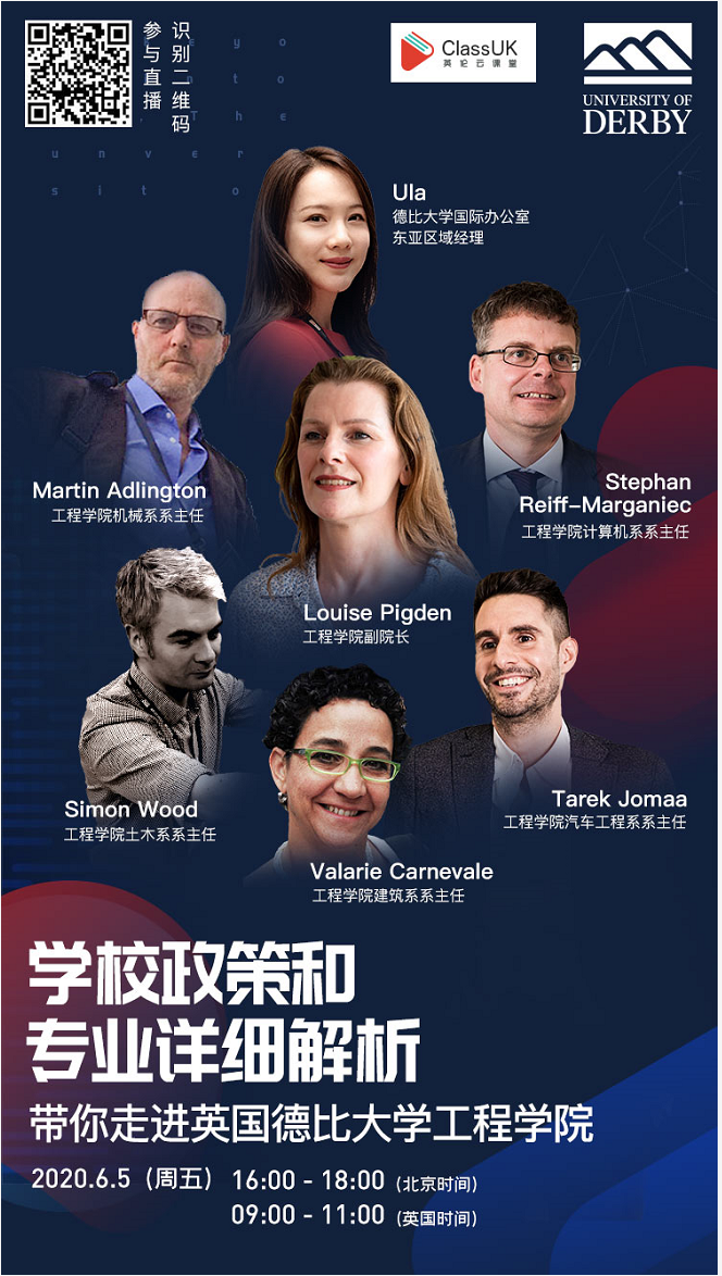 講座內(nèi)容:介紹德比大學(xué)工程學(xué)院,以及留學(xué)英國學(xué)習(xí)工程學(xué)的建議。