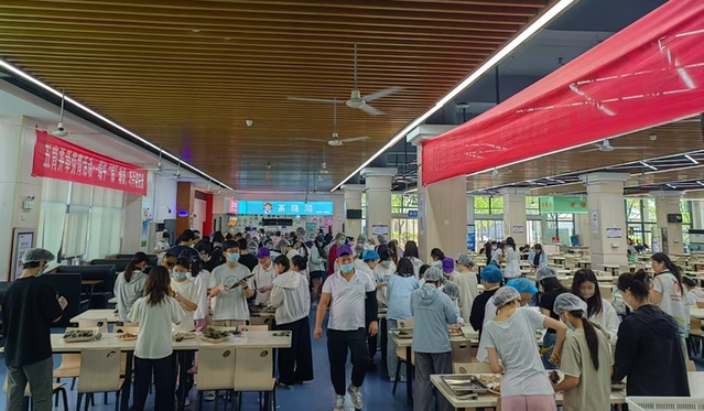 在學(xué)生處與后勤集團的聯(lián)合組織下,“端午粽動員 巧手制安康”包粽子體驗活動在第二學(xué)生食堂舉行。食堂精心準備了粽葉、糯米、肉餡和蜜棗等材料,在師傅的悉心指導(dǎo)下,200多名學(xué)生踴躍參與,共包制了2000余個粽子。
