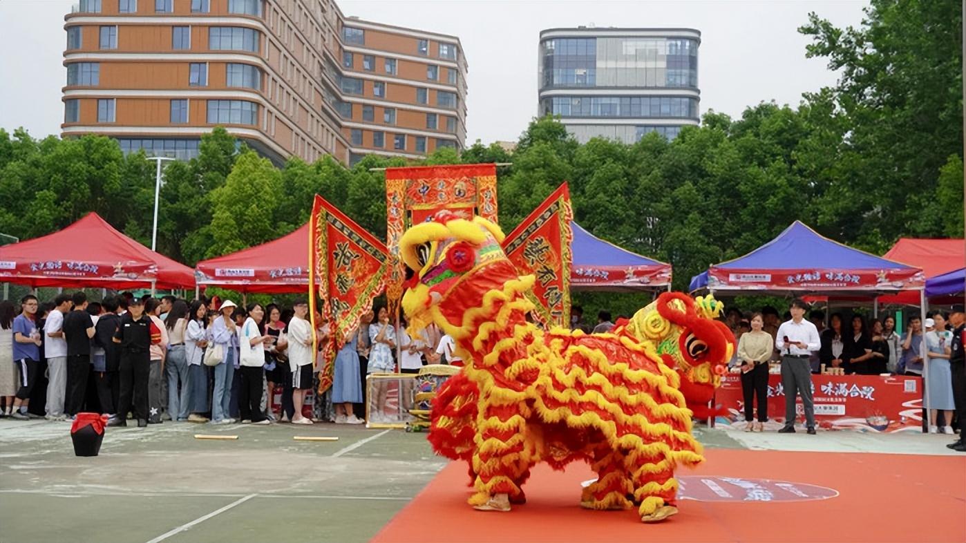 美食節(jié)不僅有美食,活動也不能少。在“校園文化與安徽美食”互動有獎問答環(huán)節(jié)中,在場觀眾積極參與,現(xiàn)場氣氛熱烈。在文藝演出環(huán)節(jié)中,伴隨著一聲聲鏗鏘有力的鑼鼓聲,國潮舞獅秀拉開帷幕,獅子時而騰空飛躍,時而俯身前行,高難度動作引來觀眾的熱烈掌聲和歡呼聲。啦啦操隊(duì)員們踏著動感的鼓點(diǎn),躍動著輕盈的腳步,身姿律動、動作優(yōu)美,自信的笑容感染著在場的每一位觀眾。合唱團(tuán)悠揚(yáng)動聽的歌聲吸引同學(xué)們紛紛駐足欣賞,音樂和美食共舞,將活動推向了高潮。