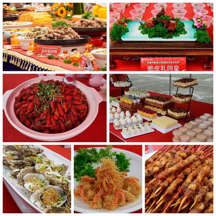 脆皮乳鴿皇,椒鹽排骨,香酥雞中翅,避風(fēng)塘烤排,水煮牛柳,特色燒龍蝦……一排排整齊的美食車擺滿了色香味俱全的各類菜肴,校內(nèi)各家餐飲公司紛紛拿出自家絕活,各色美食精彩呈現(xiàn),廣場上食物飄香,讓人垂涎欲滴。師生們?nèi)宄扇?,在各個美食攤點(diǎn)前駐足流連,排隊(duì)品嘗豐盛美味的食物?,F(xiàn)場人頭攢動,每個人臉上都洋溢著快樂的笑容。