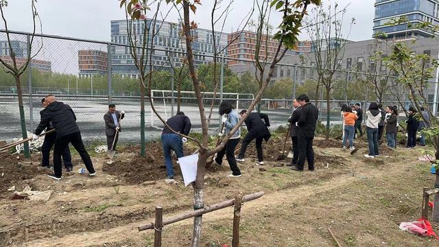 活動現(xiàn)場,大家有序組隊、分工協(xié)作、干勁十足,挖坑、扶苗、培土……每個環(huán)節(jié)都做得認(rèn)真細(xì)致、有條不紊,以飽滿的熱情投入到種一株綠,收獲一片春的行動中。經(jīng)過一個多小時的努力,一棵棵樹苗在游泳館的東南角穩(wěn)穩(wěn)扎下了根,為校園綠色發(fā)展再添一片新綠。