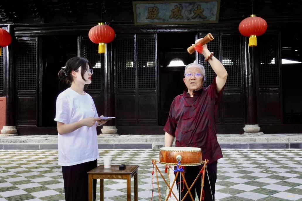 下午,團(tuán)隊(duì)成員來(lái)到壽縣老文化館,專(zhuān)訪(fǎng)壽州大鼓省級(jí)項(xiàng)目非遺傳承人魏明華老先生和口技項(xiàng)目非遺傳承人李勛老師。同工藝傳承一樣,曲藝傳承也面臨著青黃不接的困境。一方面,曲藝行業(yè)從業(yè)者要培養(yǎng)耐力,要能靜下心來(lái)打磨作品;另一方面,非遺傳承需要全社會(huì)關(guān)注,學(xué)藝要從娃娃抓起,要讓更多曲藝作品和課程走進(jìn)校園,讓孩子們從了解曲藝到熱愛(ài)曲藝,進(jìn)而傳承曲藝。