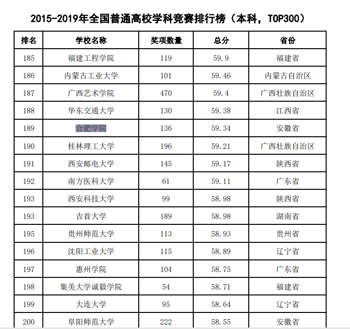 我校進入2015-2019年全國普通高校學(xué)科競賽排行榜,位列189位,全省第8位。