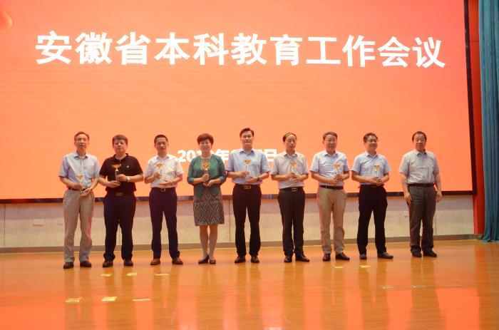 隨后,由中國科學(xué)技術(shù)大學(xué)、合肥工業(yè)大學(xué)、安徽大學(xué)、安徽師范大學(xué)、安徽農(nóng)業(yè)大學(xué)、安徽工業(yè)大學(xué)、安徽理工大學(xué)、安徽建筑大學(xué)、合肥學(xué)院以及滁州學(xué)院十所高校代表依次做經(jīng)驗(yàn)交流發(fā)言。近年來,合肥學(xué)院堅(jiān)持“以本為本,四個(gè)回歸”,建立“以學(xué)為中心”教學(xué)新機(jī)制;堅(jiān)持立德樹人,把思想政治教育貫穿本科教育全過程;突破學(xué)科定勢(shì),全面推進(jìn)模塊化課程建設(shè);實(shí)施俱樂部制改革,深化體育和美育教育;注重基層教學(xué)組織建設(shè),夯實(shí)教學(xué)工作基礎(chǔ);深化產(chǎn)教融合,協(xié)同育人,探索“雙元制”高等教育新模式,連續(xù)三屆榮獲4項(xiàng)國家級(jí)教學(xué)成果獎(jiǎng),其中一等獎(jiǎng)2項(xiàng)。在“振興本科教育榜樣處室”和“振興本科教育榜樣處長”風(fēng)采展示環(huán)節(jié),儲(chǔ)常連依次為十所高校頒獎(jiǎng),合肥學(xué)院教務(wù)處和教務(wù)處處長王曉峰獲表彰。