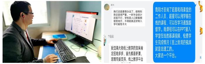 作者簡(jiǎn)介:任曉勇,語(yǔ)言文化與傳媒學(xué)院教授。主持完成省級(jí)質(zhì)量工程項(xiàng)目《中國(guó)古代文學(xué)》,負(fù)責(zé)在研國(guó)家社科基金項(xiàng)目《民國(guó)時(shí)期唐詩(shī)研究史》。作為有著30多年教齡的老教授,他連續(xù)幾天吃住在辦公室,制作課件、修訂講義、調(diào)試平臺(tái)、收集資料,并建立網(wǎng)課群,與全國(guó)各地同學(xué)以及9名老撾留學(xué)生進(jìn)行網(wǎng)上調(diào)試和互動(dòng)。為活躍課堂氣氛,他在此賦詩(shī)一首:春將過(guò)半人未逢,網(wǎng)課再聚一室中。校園梅綻無(wú)由賞,群里書香萬(wàn)里同。
