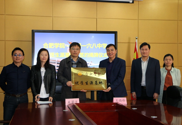 4月11日,合肥學(xué)院優(yōu)質(zhì)生源基地授牌儀式在合肥一六八中學(xué)舉行。受學(xué)校委派,教務(wù)處處長王曉峰、發(fā)展規(guī)劃處處長繆群道出席授牌儀式。王曉峰和合肥一六八中學(xué)副校長吳菊文分別代表雙方簽署了優(yōu)質(zhì)生源基地共建協(xié)議??娙旱来韺W(xué)校為優(yōu)質(zhì)生源基地學(xué)校授牌。