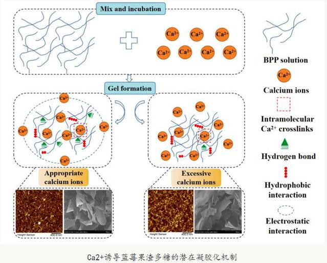 團(tuán)隊(duì)開展研究發(fā)現(xiàn),適當(dāng)濃度的Ca2+促進(jìn)藍(lán)莓果渣多糖形成“蛋盒”模型的凝膠網(wǎng)絡(luò)結(jié)構(gòu),相關(guān)成果以“Gelling properties and formation mechanism of blueberry pomace polysaccharide gels induced by calciumions”為題,發(fā)表在《Food Chemistry》上(DOI:10.1016/j.foodchem.2025.142918)。王儲(chǔ)炎為通訊作者,合肥大學(xué)生物食品與環(huán)境學(xué)院為第一完成單位。