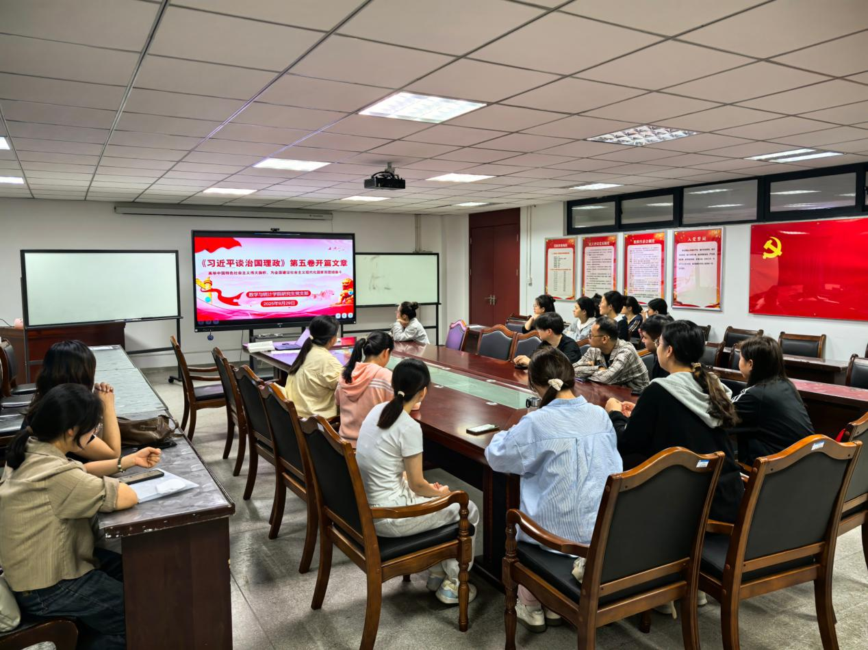 為深入學(xué)習(xí)貫徹習(xí)近平新時代中國特色社會主義思想,推動主題教育走深走實,2025年9月29日下午,數(shù)學(xué)與統(tǒng)計學(xué)院研究生黨支部在37棟305會議室舉行《習(xí)近平談治國理政》第五卷專題學(xué)習(xí)會,聚焦開篇文章《高舉中國特色社會主義偉大旗幟,為全面建設(shè)社會主義現(xiàn)代化國家而團(tuán)結(jié)奮斗》。本次學(xué)習(xí)會由研究生黨支部書記郭志飛主持,全體支部黨員參加。