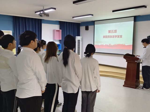 新團(tuán)員代表張宗宇發(fā)言,他表示將嚴(yán)格要求自己,努力學(xué)習(xí),提升自我,以實(shí)際行動(dòng)踐行入團(tuán)初心。優(yōu)秀老團(tuán)員代表肖一瑤也在儀式上發(fā)言,他分享了在團(tuán)內(nèi)的成長(zhǎng)經(jīng)歷和收獲,鼓勵(lì)新團(tuán)員積極參與團(tuán)組織活動(dòng),培養(yǎng)社會(huì)責(zé)任感和團(tuán)隊(duì)協(xié)作精神,他期待與新團(tuán)員們共同成長(zhǎng)進(jìn)步。緊接著,楊林向新團(tuán)員們表示祝賀,并提出殷切期望,希望新團(tuán)員們能夠認(rèn)識(shí)到身份上的轉(zhuǎn)變,堅(jiān)定自身理想信念,積極學(xué)習(xí)黨的科學(xué)理論知識(shí),胸懷理想、增長(zhǎng)才干,在新時(shí)代展現(xiàn)新作為。