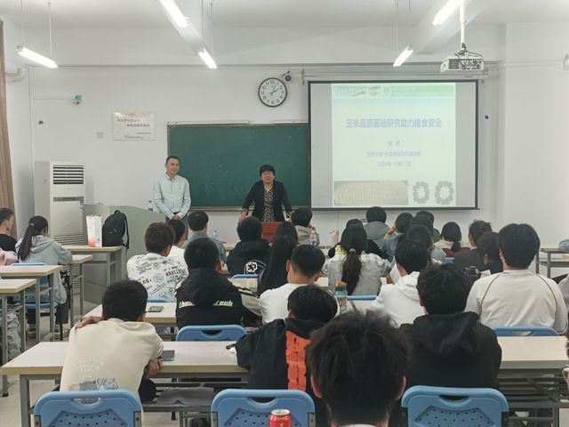 為加強學校與校友之間的聯(lián)系,分發(fā)揮優(yōu)秀校友的示范引領(lǐng)作用,幫助學生看清自身發(fā)展方向,20241011日,生物食品與環(huán)境學院在生化樓201教室舉辦了一場以“玉米品質(zhì)基礎研究助力糧食安全”為主題的精彩講座。本次講座由我校杰出校友楊俊擔任主講,生物食品與環(huán)境學院黨委書記李秀娟、院團委負責人楊林與會,22食安以及24生工3班學生參與。