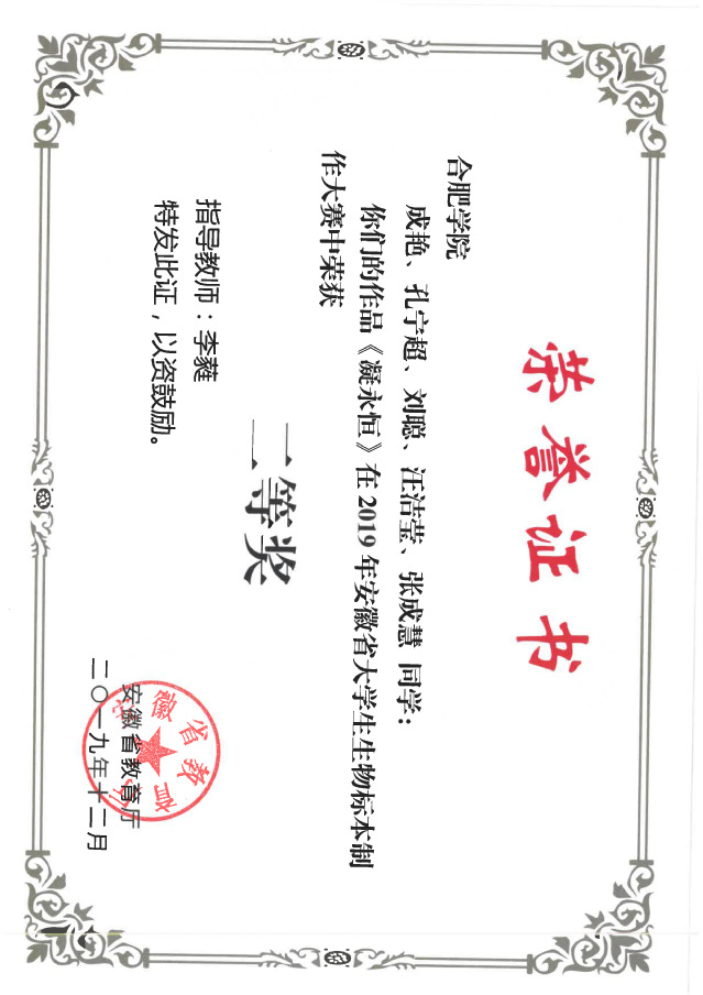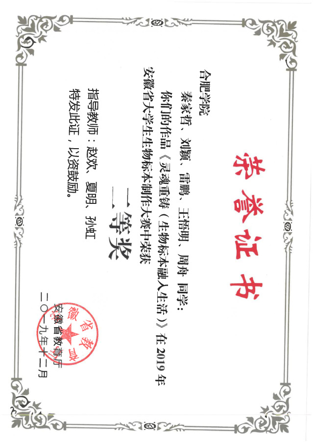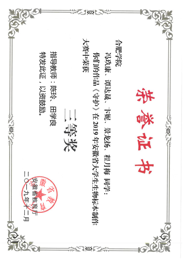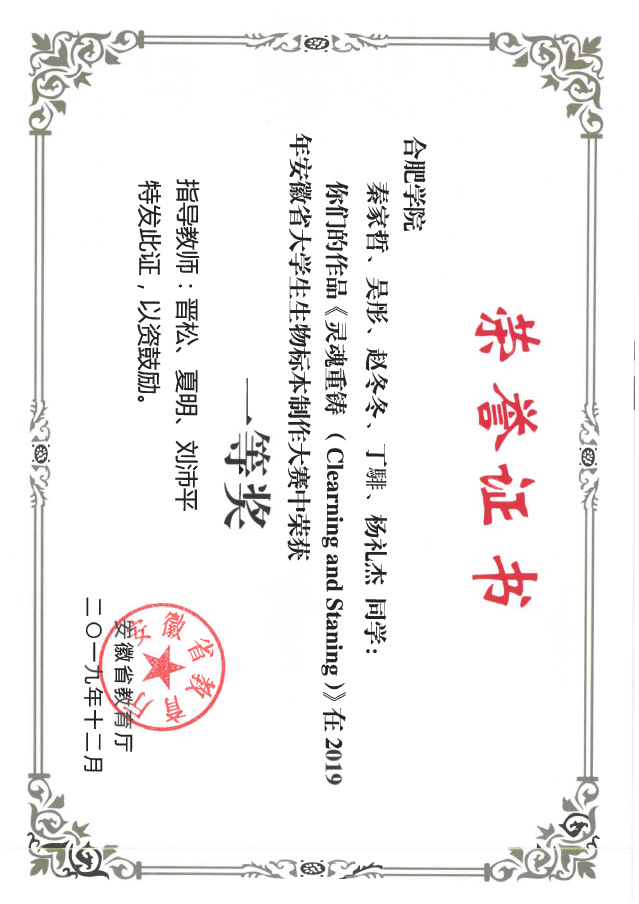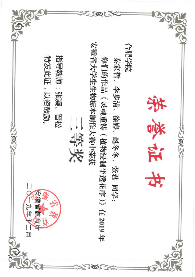 2019年安徽省大學(xué)生生物標(biāo)本制作大賽