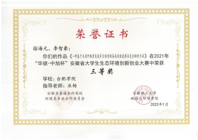 2021年安徽省大學(xué)生生態(tài)環(huán)境創(chuàng)新創(chuàng)業(yè)大賽