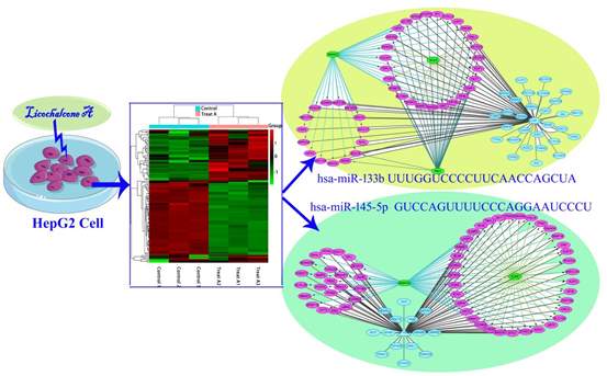 甘草Glycyrrhiza是一類豆科植物,作為一種天然甜味劑廣泛應(yīng)用于食品行業(yè),同時也是一種傳統(tǒng)中藥材,屬于藥食同源類食品。甘草查爾酮A是一種從甘草根部提取出來的黃酮類化合物,具有緩解哮喘、抑制肥胖、清除自由基和抗癌等多種生理活性。值得注意的是,越來越多的研究報告表明,甘草查爾酮A對多種癌細胞具有抑制作用,如胃癌細胞MKN-28和MKN-45、前列腺癌細胞PC-3、骨肉瘤細胞HOS和MG-63、肺癌細胞A549和H460、乳腺癌細胞和肝癌細胞HepG2。然而,甘草查爾酮A基于miRNA組學(xué)的抗癌機制尚未明確。