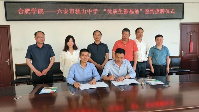 座談會(huì)后,雙方進(jìn)行了合肥學(xué)院和獨(dú)山中學(xué)“優(yōu)質(zhì)生源基地”簽約授牌儀式。黃永富副校長(zhǎng)表示將通過(guò)“優(yōu)質(zhì)生源基地”的平臺(tái)建設(shè)增強(qiáng)兩校之間的溝通、交流與合作。