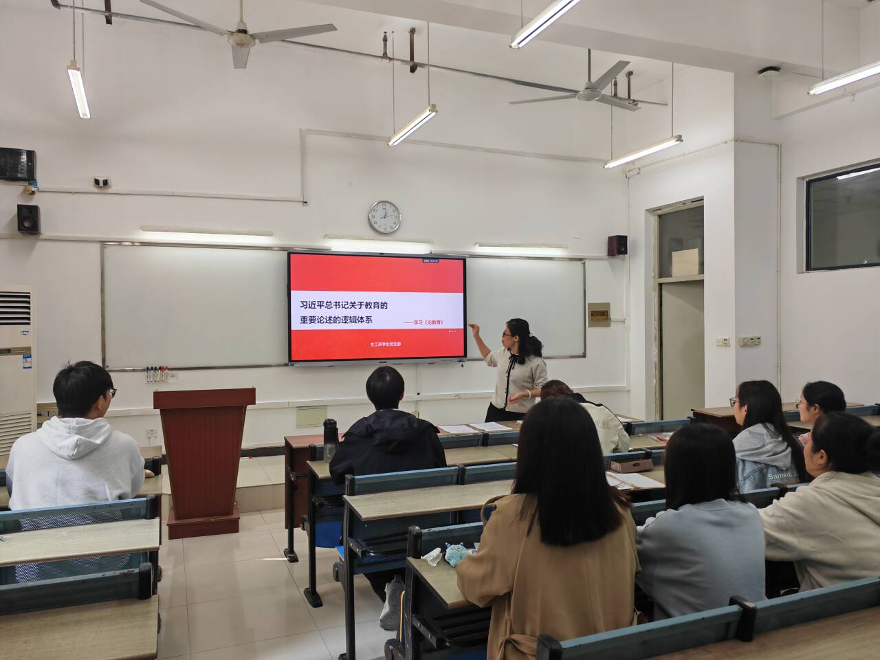 10月8日,生物食品與環(huán)境學(xué)院生工系學(xué)生黨支部開展了以“習(xí)近平總書記關(guān)于教育的重要論述的邏輯體系——學(xué)習(xí)習(xí)近平《論教育》”為主題的黨課學(xué)習(xí),此次黨課由黨支部書記陳玲老師主講。