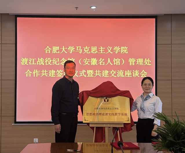 3月26日,我院與渡江戰(zhàn)役紀念館(安徽名人館)管理處在安徽名人館舉行合作共建簽約儀式暨共建交流會。渡江戰(zhàn)役紀念館(安徽名人館)管理處副書記、副處長路文舉,馬克思主義學院直屬黨支部書記、副院長蘇冰和部分教師代表出席了共建交流會。 蘇冰首先介紹了我院在思想政治理論教育、實踐教學和教科研成果等方面的基本情況,強調作為合肥市大中小學思政課一體化建設聯(lián)盟的牽頭單位,我院一直積極發(fā)揮引領作用,推動思政課一體化建設不斷向前發(fā)展。她表示,希望以此次共建為契機,與渡江戰(zhàn)役紀念館(安徽名人館)管理處攜手合作,打造館校共建、協(xié)同育人的新模式,為新時代青年的思想引領和紅色文化的傳承發(fā)展作出積極貢獻。 路文舉介紹了兩館基本情況、既往共建、品牌社教活動等工作的開展情況。他表示,渡江戰(zhàn)役紀念館和安徽名人館是傳承革命精神、弘揚愛國主義的生動課堂。此次共建活動,是雙方優(yōu)勢互補、資源共享的重要實踐,可以為廣大師生提供更多學習、研究、實踐的平臺,期望共同推動中華優(yōu)秀傳統(tǒng)文化、紅色文化的傳承與發(fā)展。 我院將進一步深入挖掘館校協(xié)同育人的新思路、新方法,構建“思政小課堂”與“社會大課堂”同頻共振的新格局,持續(xù)探索具有時代特征、安徽特色的思政教育創(chuàng)新路徑,為培養(yǎng)新時代青年的文化自信自強提供生動范本。(圖/文:張惠琳) |