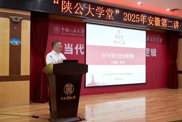 6月29日下午,“陜公大學(xué)堂”2025年安徽第二講于合肥市圖書館三樓學(xué)術(shù)報告廳開講。本次講座由中國人民大學(xué)主辦,中國人民大學(xué)安徽校友會與合肥市圖書館聯(lián)合承辦,安徽大學(xué)馬克思主義學(xué)院與合肥大學(xué)馬克思主義學(xué)院協(xié)辦。來自中國人民大學(xué)馬克思主義學(xué)院的教授郝立新,作了題為《當(dāng)代中國文化的發(fā)展邏輯》的專題報告。馬克思主義學(xué)院全體師生出席報告會。 郝立新以習(xí)近平文化思想為切入點(diǎn),認(rèn)為習(xí)近平文化思想具有“明體達(dá)用、體用貫通”的重要特征,揭示了當(dāng)代中國文化的發(fā)展邏輯,回答了時代的文化之問。郝立新首先結(jié)合習(xí)近平文化思想的相關(guān)闡述,對當(dāng)代中國文化的內(nèi)涵進(jìn)行界定,認(rèn)為當(dāng)代中國文化就是中國特色社會主義文化;接著,從文化主體性和文化規(guī)律性兩個方面揭示當(dāng)代中國文化的發(fā)展邏輯,指出發(fā)展新時代中國特色社會主義文化必須堅(jiān)定文化自信、開放包容、守正創(chuàng)新,堅(jiān)持“兩個結(jié)合”,堅(jiān)持對傳統(tǒng)文化的創(chuàng)造性轉(zhuǎn)化和創(chuàng)新性發(fā)展;最后,從思想引領(lǐng)力、精神凝聚力、價值感召力、文化自信力和文化國際影響力等五個方面勾勒當(dāng)代中國文化發(fā)展藍(lán)圖,號召當(dāng)代青年擔(dān)負(fù)起新時代的文化使命。在互動環(huán)節(jié),老師們就文化發(fā)展問題與郝立新展開積極交流,現(xiàn)場氣氛熱烈。 此次講座不僅為我們高校學(xué)者在相關(guān)領(lǐng)域的研究提供了新的思路和視角,也讓廣大師生更加深刻地認(rèn)識到新時代文化使命的重要性,有力激發(fā)了教師們積極投身于中國文化的傳承與創(chuàng)新事業(yè)的熱情,為推動文化強(qiáng)國建設(shè)注入新的活力。(圖/文:陳文靜) |
