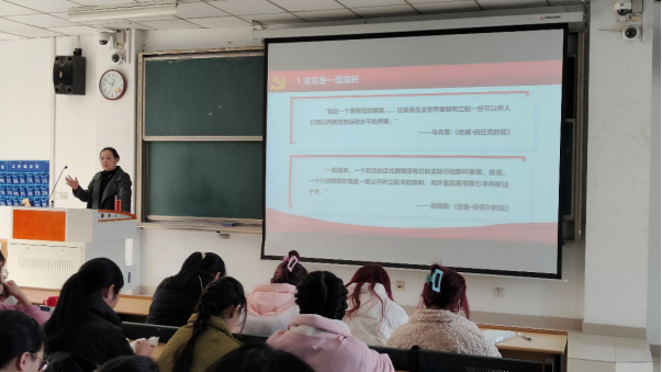 饒睿為外國語學(xué)院、教育學(xué)院、旅游與會(huì)展學(xué)院 入黨積極分子解讀新《黨章》 12月2日,外國語學(xué)院、教育學(xué)院、旅游與會(huì)展學(xué)院分黨校第二次線下集中授課在5-101順利開展。馬克思主義學(xué)院饒睿老師應(yīng)邀為全體積極分子講授了一堂題為“深刻領(lǐng)會(huì)二十大黨章修正案的重大意義與重要內(nèi)容——《中國共產(chǎn)黨章程》解讀”的黨課。 饒睿老師先為學(xué)員們介紹了中國共產(chǎn)黨第二十次全國代表大會(huì)召開的情況和重大成就,然后從什么是黨章,為什么修改黨章,黨的綱領(lǐng)和黨的章程四個(gè)方面全面解讀了《中國共產(chǎn)黨章程》。習(xí)近平總書記指出:“黨章是我們立黨、治黨、管黨的總章程,是全黨最基本、最重要、最全面的行為規(guī)范”。黨的十八大以來,我們?nèi)鎻膰?yán)治黨,推進(jìn)黨的自我革命,其實(shí)就是從尊重《黨章》,落實(shí)《黨章》開始的。《黨章》不僅“是全黨同志必須共同遵守的根本性規(guī)范”,也是廣大入黨積極分子必修的一課。課中,饒睿老師強(qiáng)調(diào)了學(xué)習(xí)黨章的“核心”“根本”“關(guān)鍵”“實(shí)質(zhì)”,要求各位入黨積極分子“從黨章出發(fā),向黨章看齊”,認(rèn)真學(xué)習(xí)黨章黨規(guī),認(rèn)真學(xué)習(xí)習(xí)近平新時(shí)代中國特色社會(huì)主義思想,爭取早日成為一名合格的共產(chǎn)黨員。 此次黨課,同學(xué)們通過學(xué)習(xí)《黨章》明確了黨的性質(zhì),了解了黨的歷史,理解了黨的初心和使命,更加深了對(duì)中國共產(chǎn)黨的領(lǐng)導(dǎo)和中國特色社會(huì)主義現(xiàn)代化建設(shè)的認(rèn)識(shí)。同學(xué)們受益匪淺,紛紛表示在今后的學(xué)習(xí)和工作中要更加積極的向黨組織靠攏,在中國共產(chǎn)黨的領(lǐng)導(dǎo)下,勇于承擔(dān)青年大學(xué)生的使命和擔(dān)當(dāng),以奮進(jìn)的姿態(tài)為我國的社會(huì)主義現(xiàn)代化建設(shè)做貢獻(xiàn)。(馬克思主義學(xué)院) |