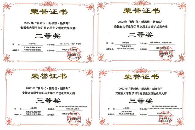 我校學(xué)子在2022年“新時代·新思想·新青年”安徽省大學(xué)生學(xué)習(xí)馬克思主義理論成果大賽中獲佳績