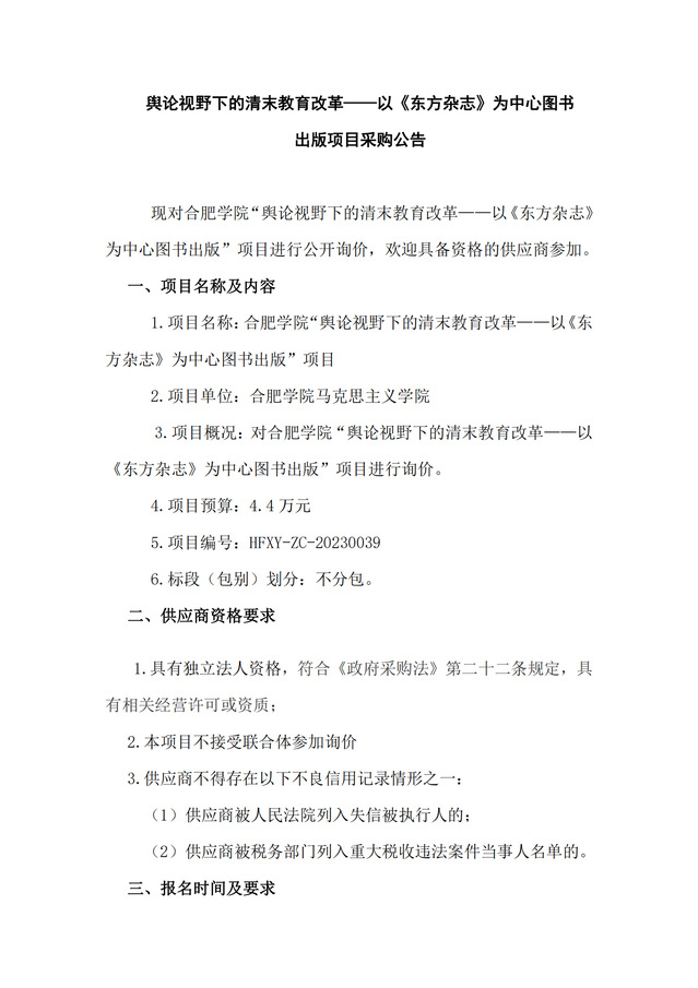 輿論視野下的清末教育改革——以《東方雜志》為中心圖書 出版項目采購公告