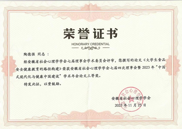 我院教師在安徽省社會(huì)心理學(xué)會(huì)2023年學(xué)術(shù)年會(huì)上獲獎(jiǎng)