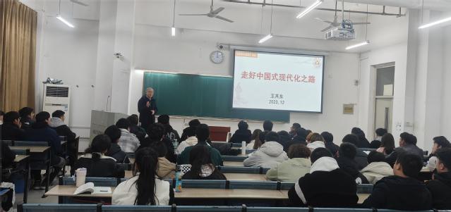 王其東為學(xué)生上“形勢與政策”課 中國式現(xiàn)代化的過去、現(xiàn)在和未來是什么樣的?大學(xué)生在新征程上應(yīng)該書寫怎樣的答案,做出怎樣的貢獻(xiàn)?2023年12月5日下午,院黨委書記王其東教授以“走好中國式現(xiàn)代化之路”為題,為23級新能源、23級能源化學(xué)工程專業(yè)的學(xué)生帶來了一堂生動的《形勢與政策》課。 王其東書記圍繞中國式現(xiàn)代化的歷史演變、發(fā)展現(xiàn)狀展開授課。他首先回顧了近代百年在黨領(lǐng)導(dǎo)下中國人民探索中國式現(xiàn)代化的漫漫長路,講述了新中國成立后特別是改革開放以來的理論探索和實(shí)踐活動,重點(diǎn)講述了黨的十八大以來成功推進(jìn)和拓展中國式現(xiàn)代化取得的變革與成就。接著,他深入闡述了中國式現(xiàn)代化的基本特征,是人口規(guī)模巨大的現(xiàn)代化,是全體人民共同富裕的現(xiàn)代化,物質(zhì)文明和精神文明相協(xié)調(diào)的現(xiàn)代化,人與自然和諧共生的現(xiàn)代化,走和平發(fā)展道路的現(xiàn)代化。然后,全面分析了中國式現(xiàn)代化與西方現(xiàn)代化的本質(zhì)區(qū)別,讓學(xué)生充分認(rèn)識到,世界上既不存在定于一尊的現(xiàn)代化模式,也不存在放之四海而皆準(zhǔn)的現(xiàn)代化標(biāo)準(zhǔn),一個(gè)國家,一個(gè)民族,只有找到適合自己條件的道路,才能實(shí)現(xiàn)自己的發(fā)展目標(biāo)。最后,王書記對青年在實(shí)現(xiàn)中國式現(xiàn)代化的重要作用提出四點(diǎn)希望,希望學(xué)生們要立大志,用理想之光照亮青春奮斗之路;要明大德,以崇德修身啟潤青春向善追求;要成大才,讓增長本領(lǐng)成就青春搏擊力量,擔(dān)大任,以敢于擔(dān)當(dāng)書寫青春壯麗篇章。 課后,同學(xué)們紛紛表示,堅(jiān)信中國式現(xiàn)代化道路不僅走得對、走得通,而且也一定能夠走得穩(wěn)、走得好,堅(jiān)定了以中國式現(xiàn)代化推進(jìn)中華民族偉大復(fù)興的必勝信念。作為當(dāng)代大學(xué)生,深深感受到國家的進(jìn)步應(yīng)有青年的足跡,青年應(yīng)以更加自信的態(tài)度、更加主動的精神,投入到未來現(xiàn)代化事業(yè)中去。(馬克思主義學(xué)院) |