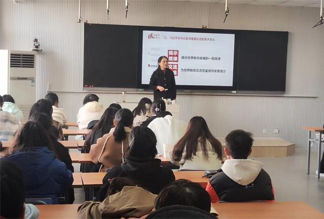 陳秀為大學(xué)生上思政課 為切實(shí)發(fā)揮學(xué)校領(lǐng)導(dǎo)在思政課建設(shè)中的示范帶頭作用,2023年12月6日,陳秀副院長(zhǎng)深入教學(xué)一線,在37棟403教室為23級(jí)數(shù)學(xué)與應(yīng)用數(shù)學(xué)專業(yè)學(xué)生講授了一堂有高度、有深度、有情懷、有溫度的思政課。 陳秀副院長(zhǎng)指出,習(xí)近平總書記關(guān)于教育的重要論述是師范專業(yè)學(xué)生的必修課,我們要深刻理解習(xí)近平總書記關(guān)于教育的重要論述的科學(xué)內(nèi)涵和重大意義。她希望同學(xué)們既刻苦鉆研理論知識(shí),又積極掌握專業(yè)技能,立足國(guó)際視野、家國(guó)情懷、集體精神和創(chuàng)新思維的新時(shí)代人才基本需求,不斷提高與時(shí)代發(fā)展要求相適應(yīng)的素質(zhì)和能力,做到德智體美勞全面發(fā)展,努力成長(zhǎng)為黨和人民需要的有用之才。最后,她結(jié)合師范專業(yè)特點(diǎn),強(qiáng)調(diào)立德樹人是教育的根本任務(wù),以身作則地告訴同學(xué)們要高標(biāo)準(zhǔn)嚴(yán)格要求自己,錘煉扎實(shí)本領(lǐng),努力成為一個(gè)有理想信念、有道德情操、有扎實(shí)學(xué)識(shí)、有仁愛之心的“四有”好老師,肩負(fù)起時(shí)代賦予的重任。 陳秀副院長(zhǎng)精彩生動(dòng)的思政課為將來(lái)走向教師工作崗位的師范生以思想啟迪。課后,同學(xué)們紛紛表示會(huì)牢記陳秀副院長(zhǎng)的囑托和要求,刻苦學(xué)習(xí),不斷提高自己的專業(yè)技能和素養(yǎng),無(wú)愧于時(shí)代、無(wú)愧于人民、無(wú)愧于青春。(馬克思主義學(xué)院)