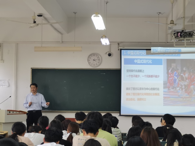 5月31日下午,校黨委委員、副校長(zhǎng)白義香走進(jìn)課堂,以“讀懂中國(guó)式現(xiàn)代化”為主題,為23級(jí)財(cái)務(wù)管理專業(yè)的本科生講授了一堂精彩的思政課。 白義香主要從中國(guó)式現(xiàn)代化的特征、當(dāng)今中國(guó)面臨的機(jī)遇與挑戰(zhàn)以及新時(shí)代中國(guó)的發(fā)展目標(biāo)三個(gè)方面介紹了中國(guó)式現(xiàn)代化。他通過(guò)生動(dòng)的案例和詳實(shí)的數(shù)據(jù),深入淺出地闡述了中國(guó)式現(xiàn)代化的豐富內(nèi)涵和重大意義。授課期間,白義香與同學(xué)們積極互動(dòng),引導(dǎo)學(xué)生深入思索中國(guó)式現(xiàn)代化與個(gè)人成長(zhǎng)、國(guó)家發(fā)展的緊密關(guān)聯(lián)。他鼓勵(lì)同學(xué)們,作為新時(shí)代大學(xué)生,應(yīng)當(dāng)勤奮學(xué)習(xí),展現(xiàn)青春的朝氣銳氣,勇做走在時(shí)代前列的奮進(jìn)者、開(kāi)拓者、奉獻(xiàn)者。 此次思政課為同學(xué)們打開(kāi)了一扇深入了解中國(guó)式現(xiàn)代化的窗口,激發(fā)了同學(xué)們的責(zé)任感和使命感。同學(xué)們紛紛表示,將以更為飽滿的熱情和加倍的努力,投身中國(guó)式現(xiàn)代化建設(shè),為實(shí)現(xiàn)中華民族偉大復(fù)興貢獻(xiàn)自己的力量。 (撰稿:吳瓊 初審:王芳 復(fù)審:姜波 終審:蘇冰)