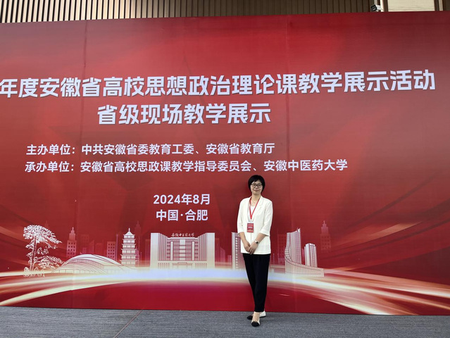 8月7日至8日,由中共安徽省委教育工委、安徽省教育廳主辦,安徽省高校思政課教學(xué)指導(dǎo)委員會(huì)、安徽中醫(yī)藥大學(xué)承辦的2024年度全省高校思政課教學(xué)展示活動(dòng)省級(jí)現(xiàn)場(chǎng)教學(xué)展示在合肥舉行。我校馬克思主義學(xué)院教師胡彩林榮獲本科組一等獎(jiǎng),這是我校思政課教師參加教學(xué)比賽以來取得的最好成績(jī)。