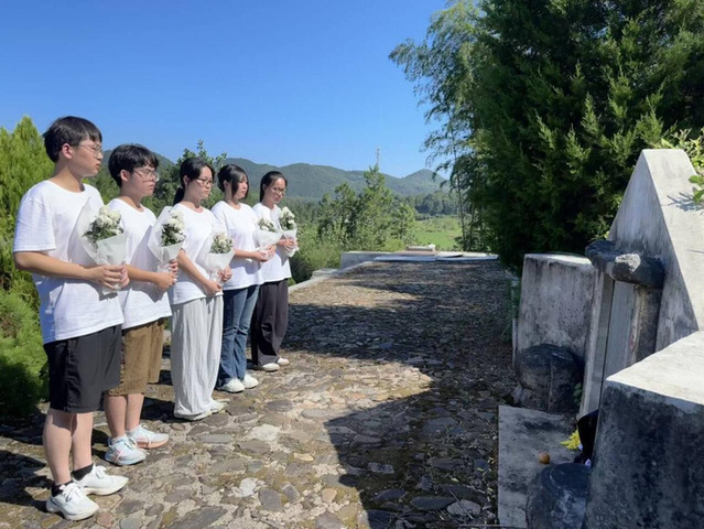 實(shí)踐隊(duì)前往黃龍崗新四軍抗日殉國(guó)烈士墓舉行祭奠獻(xiàn)花儀式,向131位皖南事變犧牲的指戰(zhàn)員致以最高敬意。實(shí)踐隊(duì)還奔赴皖南事變烈士陵園,探尋歷史脈絡(luò),深刻體悟先烈堅(jiān)守信仰、永不屈服的抗?fàn)幘瘛?/span>