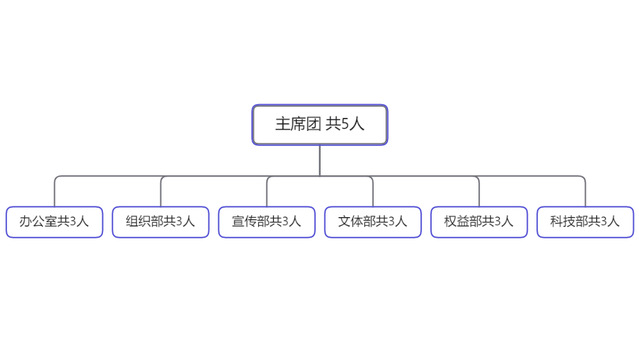 合肥大學(xué)學(xué)生會(huì)工作機(jī)構(gòu)架構(gòu)為“主席團(tuán)+工作部門”模式,未在工作部門以上或以下設(shè)置“中心”、“項(xiàng)目辦公室”等常設(shè)層級(jí);主席團(tuán)下設(shè):辦公室、組織部、宣傳部、文體部、權(quán)益部、科技部共六個(gè)部門。