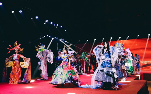 本屆比賽的主題是“綠水豐漣漪,青山多錦繡”。參賽團隊模特身著廢舊物品制作的服裝依次進行10分鐘的展示表演,模特們的精彩走秀配合設計師現場講解生動詮釋了作品的環(huán)保理念和時尚設計。其中,語言文化與傳媒學院的作品《綠野仙蹤回歸自然》打破了快節(jié)奏的城市生活的桎梏,讓觀眾回歸到風光旖旎的大自然當中,身臨其境地感受人與自然和諧相處的美好;教育學院的作品《冷渡塵煙青山歸鳥》立意新穎,設計別出心裁,同時其融入了生態(tài)文明理念和四方神獸的概念進行創(chuàng)作設計,帶來驚艷的視覺效果;經濟與管理學院的作品《錦繡山河》、先進制造工程學院的作品《翰墨綻放》、設計學院的作品《亦初,此刻》等也是精心設計、精品展示、精彩紛呈,場內掌聲和尖叫聲經久不息。