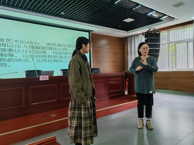 在講座互動環(huán)節(jié)中,同學(xué)們積極提出自己的問題,李蓓蓓老師給予了詳細(xì)的回答。有同學(xué)上臺展示了一段獨白,李蓓蓓老師與她一同分析了角色內(nèi)涵,共同探討如何演繹才更加符合人物形象。最后,李蓓蓓老師親自為大家示范了一遍獨白中的情緒變化,給大家留下了深刻印象。講座結(jié)束時,殷明明副院長感謝李教授為大家?guī)砭实膽騽◇w驗,也提醒同學(xué)們,戲劇表演非常有助于大家加深對文學(xué)文本的理解,希望大家演好也學(xué)好,真正做到全面發(fā)展。