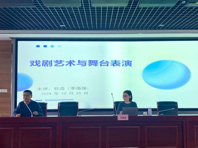 為推動五育并舉,促進(jìn)全面發(fā)展,合肥大學(xué)語言文化與傳媒學(xué)院于2024年10月25日上午九時在一區(qū)博學(xué)樓C座學(xué)術(shù)報告廳舉辦主題為“戲劇藝術(shù)與舞臺表演”的講座,語言文化與傳媒學(xué)院副院長殷明明、中文系主任洪婧、崔璨老師、周佳俊老師,2023級漢語言文學(xué)專業(yè)全體同學(xué)參加。