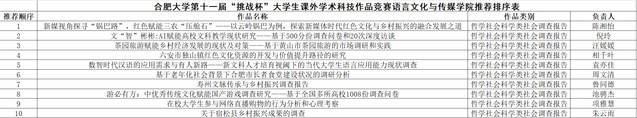 經(jīng)測(cè)評(píng)小組評(píng)審,語(yǔ)言文化與傳媒學(xué)院“挑戰(zhàn)杯”大學(xué)生課外學(xué)術(shù)科技作品推薦順序如下,公示期1月8日至1月13日,公示期間若有異議,可通過(guò)電子郵件、電話(huà)的方式向團(tuán)委反應(yīng)。
