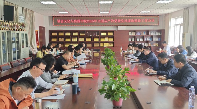 4月8日下午,語言文化與傳媒學(xué)院在學(xué)院大會(huì)議室召開2025年全面從嚴(yán)治黨暨黨風(fēng)廉政建設(shè)工作會(huì)議,學(xué)院全體教師參加會(huì)議,會(huì)議由院黨委書記儲(chǔ)昭輝主持。