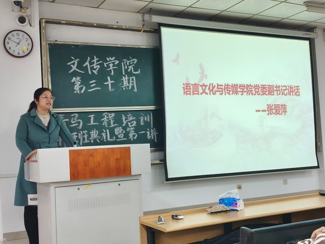 12月4日中午12:40,語(yǔ)言文化與傳媒學(xué)院第三十期“青馬工程”培訓(xùn)開(kāi)班典禮暨第一講在一區(qū)善思樓C座101教室順利舉行。合肥大學(xué)校團(tuán)委副書記李妍妍、語(yǔ)言文化與傳媒學(xué)院黨委副書記張愛(ài)萍、語(yǔ)言文化與傳媒學(xué)院團(tuán)委負(fù)責(zé)老師竇思佳出席。本次典禮由項(xiàng)雅慧主持。