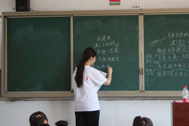 7月8日,合肥大學(xué)語言文化與傳媒學(xué)院暑期三下鄉(xiāng)社會(huì)實(shí)踐教學(xué)組在石板沖初級(jí)中學(xué)開展了一堂別開生面的語文課,以王昌齡《采蓮曲》與李白《早發(fā)白帝城》為載體,開啟古典詩詞的沉浸式學(xué)習(xí)之旅。