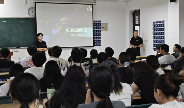 宣講會伊始,播放了森泊度假樂園企業(yè)宣傳片,生動展現(xiàn)了開元森泊將自然生態(tài)與度假體驗完美融合的獨特魅力,其“酒店+樂園”的一站式創(chuàng)新模式令同學(xué)們印象深刻。隨后,開元森泊的人力資源負(fù)責(zé)人吳燕介紹了該企業(yè)的發(fā)展歷程、核心文化以及在休閑度假領(lǐng)域的領(lǐng)先地位。講解重點聚焦于面向在校生和應(yīng)屆畢業(yè)生的“森泊星計劃”培養(yǎng)項目,該項目通過系統(tǒng)化的輪崗實踐、資深導(dǎo)師的一對一指導(dǎo)和豐富的在崗培訓(xùn),旨在幫助新人快速完成從學(xué)生到職業(yè)人的轉(zhuǎn)變,成長為復(fù)合型文旅人才。
