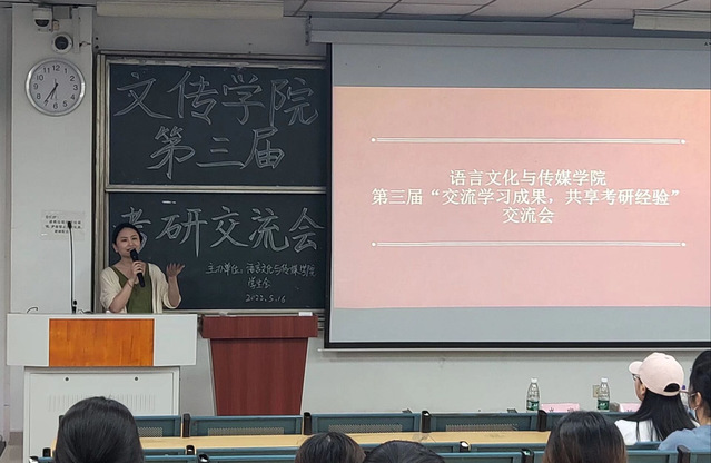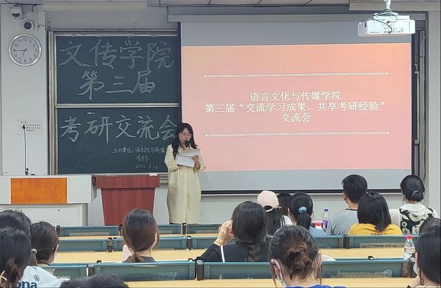 五月十六日晚六點(diǎn)半,語言文化與傳媒學(xué)院第三屆考研交流會在善思樓A座101教室順利舉辦。本次活動由六名考研上岸的學(xué)長學(xué)姐分享自己的經(jīng)驗(yàn),為學(xué)弟學(xué)妹們提供參考和借鑒。語言文化與傳媒學(xué)院學(xué)工辦副主任顧盼盼老師、語言文化與傳媒學(xué)院崔璨老師,語言文化與傳媒學(xué)院學(xué)生會主席團(tuán)成員作為嘉賓出席本次活動,文傳學(xué)院各年級同學(xué)參與其中。