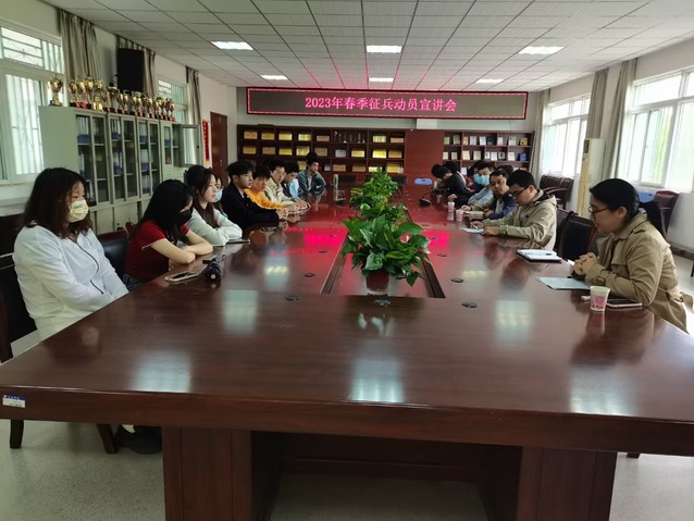 為貫徹落實國家征兵政策,鼓勵學(xué)生積極響應(yīng)號召應(yīng)征入伍,5月6日,語言文化與傳媒學(xué)院邀請學(xué)生處征兵辦鄭國平老師來我院開展征兵宣傳活動,語言文化與傳媒學(xué)院2023屆畢業(yè)班全體男生參加。