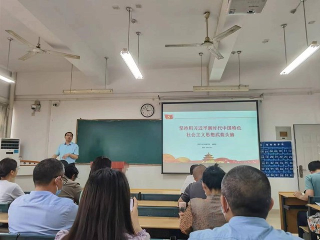 會(huì)后,全院教師在5棟305教室聆聽(tīng)黨委書(shū)記儲(chǔ)昭輝作“學(xué)習(xí)貫徹習(xí)近平新時(shí)代中國(guó)特色社會(huì)主義思想主題教育專題黨課暨二十大精神宣講”。儲(chǔ)昭輝從“習(xí)近平新時(shí)代中國(guó)特色社會(huì)主義思想的科學(xué)體系”、“黨的二十大戰(zhàn)略部署和目標(biāo)任務(wù)”、“習(xí)近平總書(shū)記關(guān)于教育的重要論述”以及“文傳學(xué)院黨委貫徹落實(shí)的思路舉措和打算”四個(gè)方面為全院教師及學(xué)生黨員進(jìn)行了精彩的講授,強(qiáng)調(diào)對(duì)于習(xí)近平新時(shí)代中國(guó)特色社會(huì)主義思想的學(xué)習(xí)不僅要整體把握,更要做到全面理解、融會(huì)貫通,把主題教育成效轉(zhuǎn)化為推動(dòng)學(xué)院建設(shè)發(fā)展的強(qiáng)大動(dòng)力。