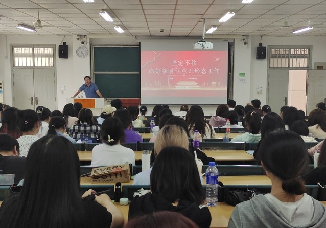 5月23日下午,語言文化與傳媒學(xué)院2023年入黨積極分子培訓(xùn)班第三次理論授課在一區(qū)善思樓A座101教室舉行。本次黨課由校黨委委員、宣傳(統(tǒng)戰(zhàn))部部長賈峰主講,題目為“堅定不移做好新時代意識形態(tài)工作”,我院及旅游與會展學(xué)院本期入黨積極分子培訓(xùn)班學(xué)員參加,黨課由語言文化與傳媒學(xué)院黨委書記儲昭輝主持。