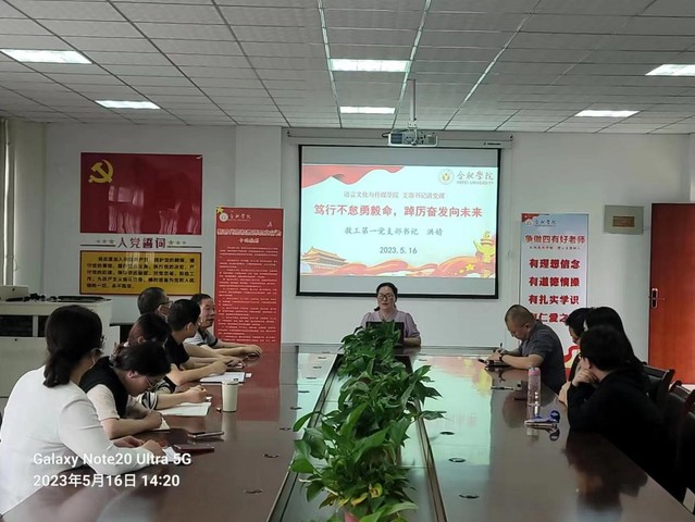 為貫徹學(xué)習(xí)習(xí)近平新時(shí)代中國(guó)特色社會(huì)主義思想,進(jìn)一步加強(qiáng)黨員隊(duì)伍建設(shè),5月16日下午,教工第一支部在院會(huì)議室召開(kāi)黨員大會(huì),開(kāi)展主題教育集中學(xué)習(xí)交流研討會(huì),支部書(shū)記洪婧以《篤行不怠勇毅命,踔厲奮發(fā)向未來(lái)》為題為支部黨員作專(zhuān)題黨課。