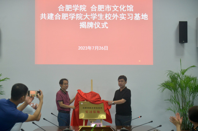 2023年7月26日,合肥學(xué)院語(yǔ)言文化與傳媒學(xué)院同合肥市文化館簽訂大學(xué)生校外實(shí)習(xí)基地協(xié)議,并舉行揭牌儀式。合肥文化館館長(zhǎng)楊晨、副館長(zhǎng)沈瑭、衛(wèi)博森、藝術(shù)培訓(xùn)部主任吳嫻、辦公室主任朱淑雅、調(diào)研編輯部主任楊治國(guó),語(yǔ)言文化與傳媒學(xué)院院長(zhǎng)丁增武、副院長(zhǎng)殷明明、中文系主任洪婧、教學(xué)辦主任章衡等出席了此次儀式,21級(jí)漢語(yǔ)言文學(xué)專業(yè)學(xué)生蘇鵬飛、常倩寧、甘為可、季鵬飛、謝傳慶作為本年度認(rèn)知實(shí)習(xí)學(xué)生代表參與儀式并發(fā)言。