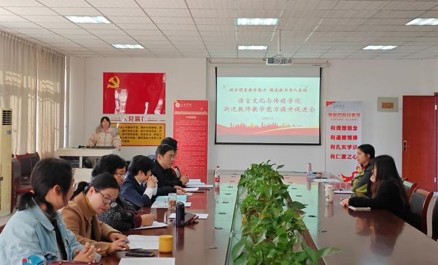 高質(zhì)量教師是高質(zhì)量教育發(fā)展的中堅力量,為幫助新進教師更好地掌握教學基本功,提升課堂教學能力,鍛造教書育人本領,語言文化與傳媒學院精心組織開展新進教師教學能力提升工作,學院于2023年11月24日召開了新進教師教學能力提升促進會。學院領導、教學督導組、系部主任和新進教師與會交流研討。