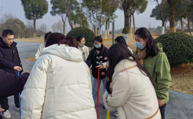 活動前是一個熱身小游戲,同學(xué)們圍成一圈玩不倒森林,同學(xué)們每人手持一根長桿,依次輪換位置去握住別人的桿子,現(xiàn)場的氣氛瞬間被調(diào)動起來。這考驗了同學(xué)們的反應(yīng)速度和協(xié)調(diào)能力,更強調(diào)了團隊協(xié)作的重要性。