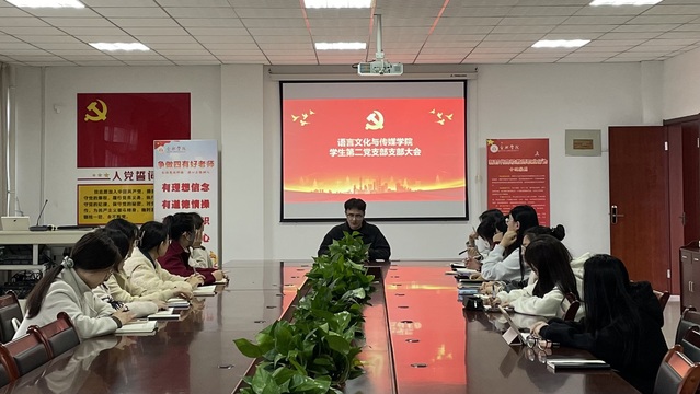 為堅持以習近平新時代中國特色社會主義思想為指導,全面貫徹黨的二十大精神和全國兩會精神,328日晚,語言文化與傳媒學院學生第二黨支部在學院會議室開展專題理論學習,會議由支部書記柳守志主持,全體黨員參加。