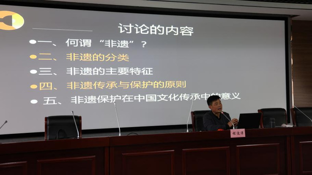 講座圍繞非遺文化的價值和傳承意義展開,程教授用大量生動的案例和圖片講述“非遺”的由來、類別和特征,呈現(xiàn)“非遺”的獨特魅力、保護原則和在中國文化傳承中的意義,并結合自身經(jīng)歷,闡述非遺文化傳承的重要性,提醒同學們傳承非遺,時不我待。